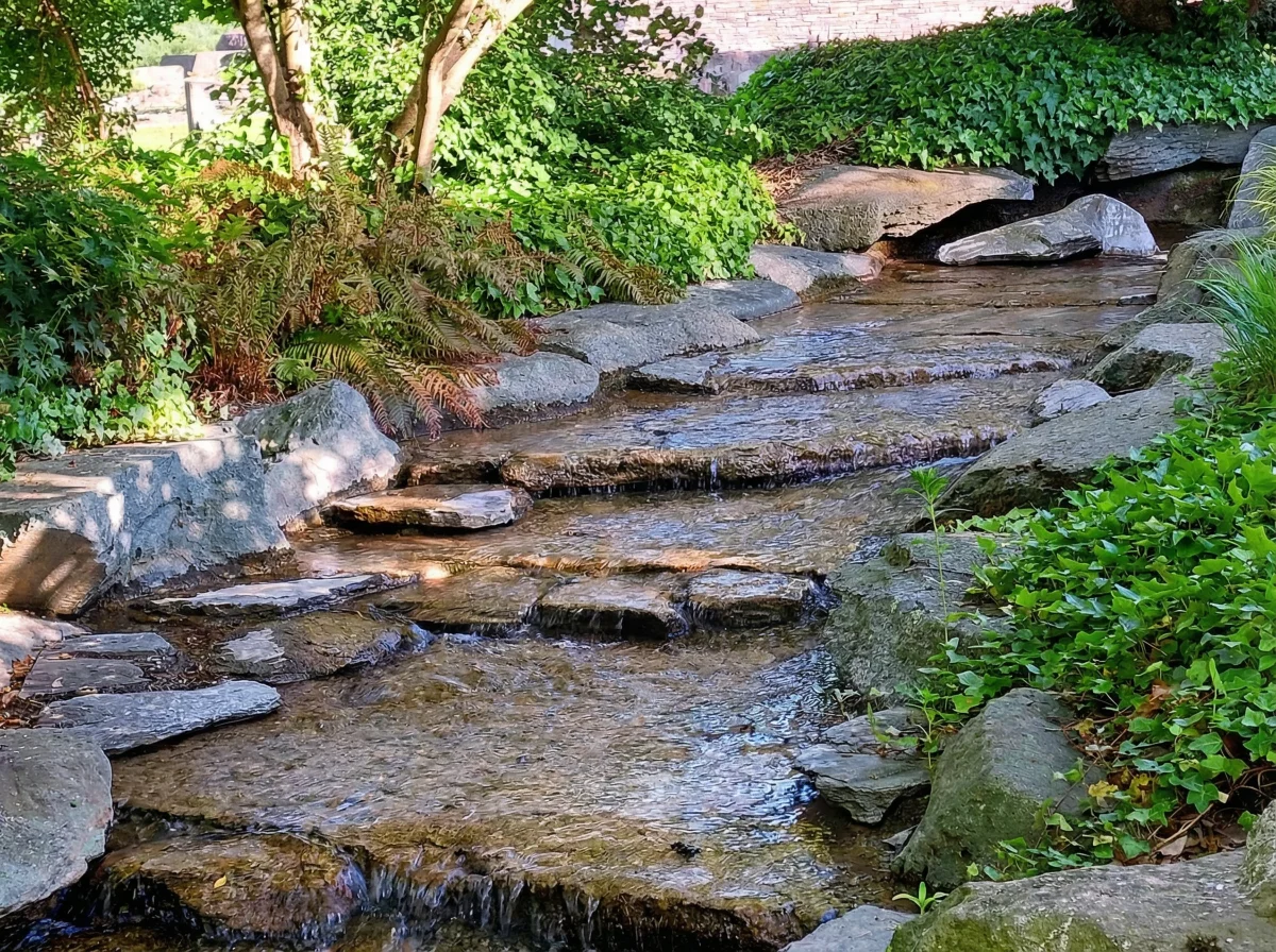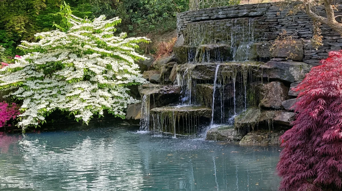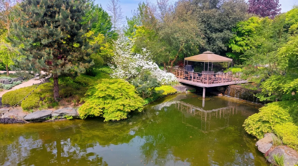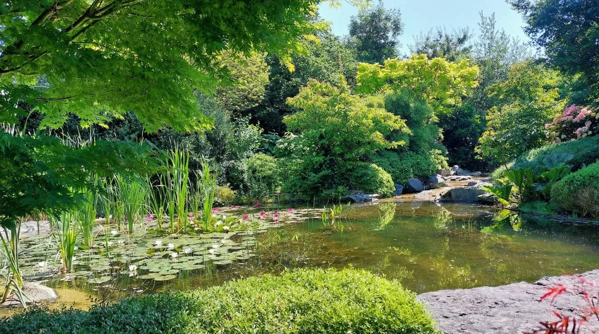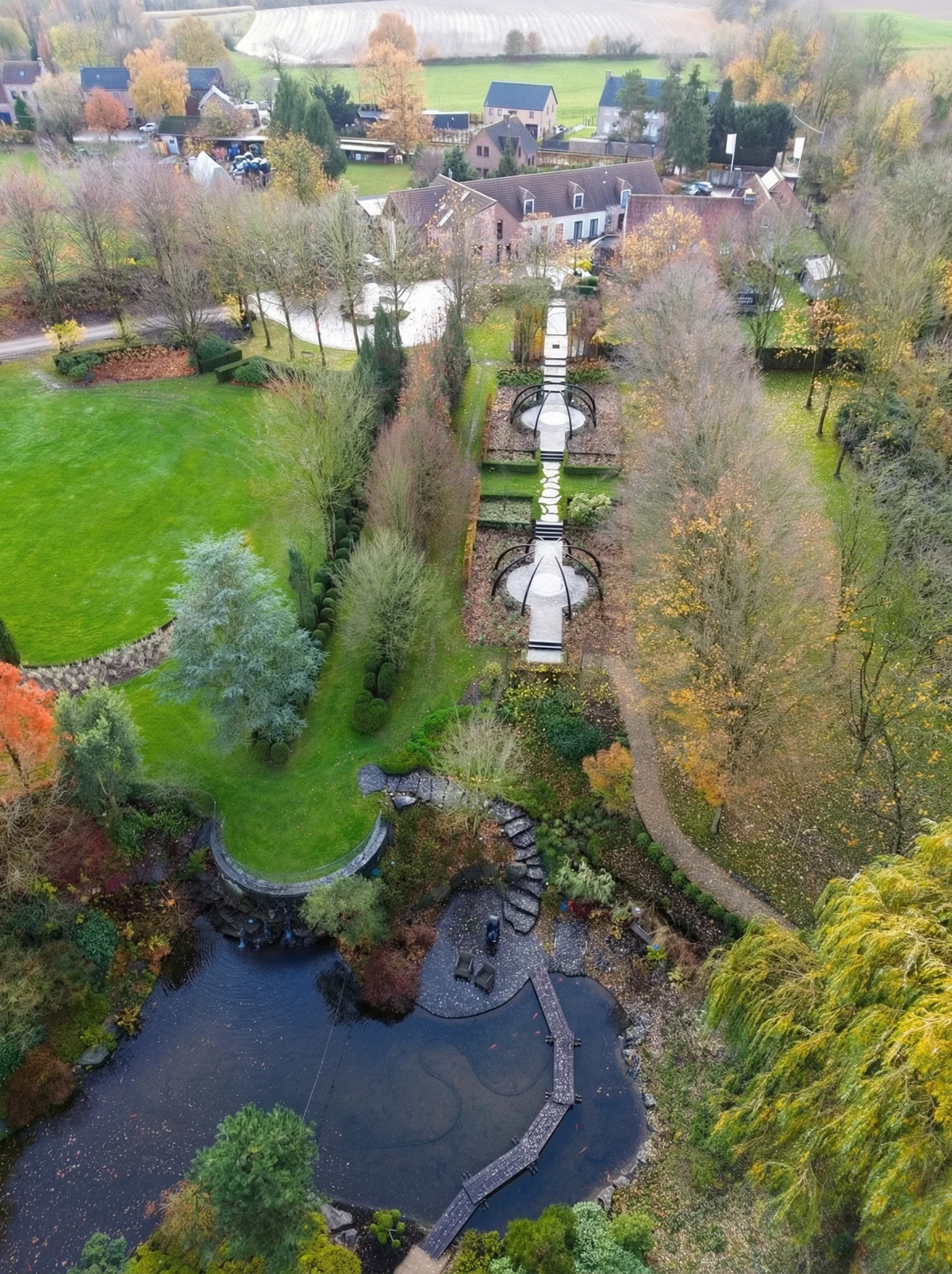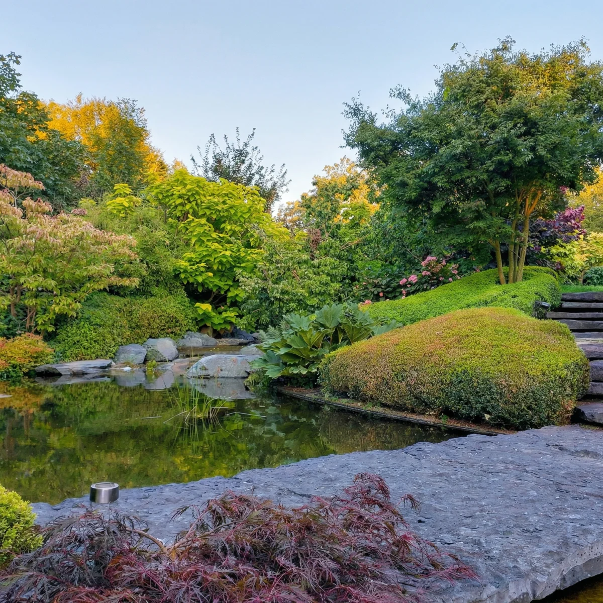 L'eau y tient une place centrale. De vastes pièces d'eau reflètent le ciel et la végétation, apportant profondeur et sérénité à l'ensemble. Une rivière traverse le jardin comme un fil conducteur, reliant les différents espaces dans une continuité naturelle et apaisante. Le murmure de l'eau accompagne la promenade, renforçant cette sensation d'évasion.