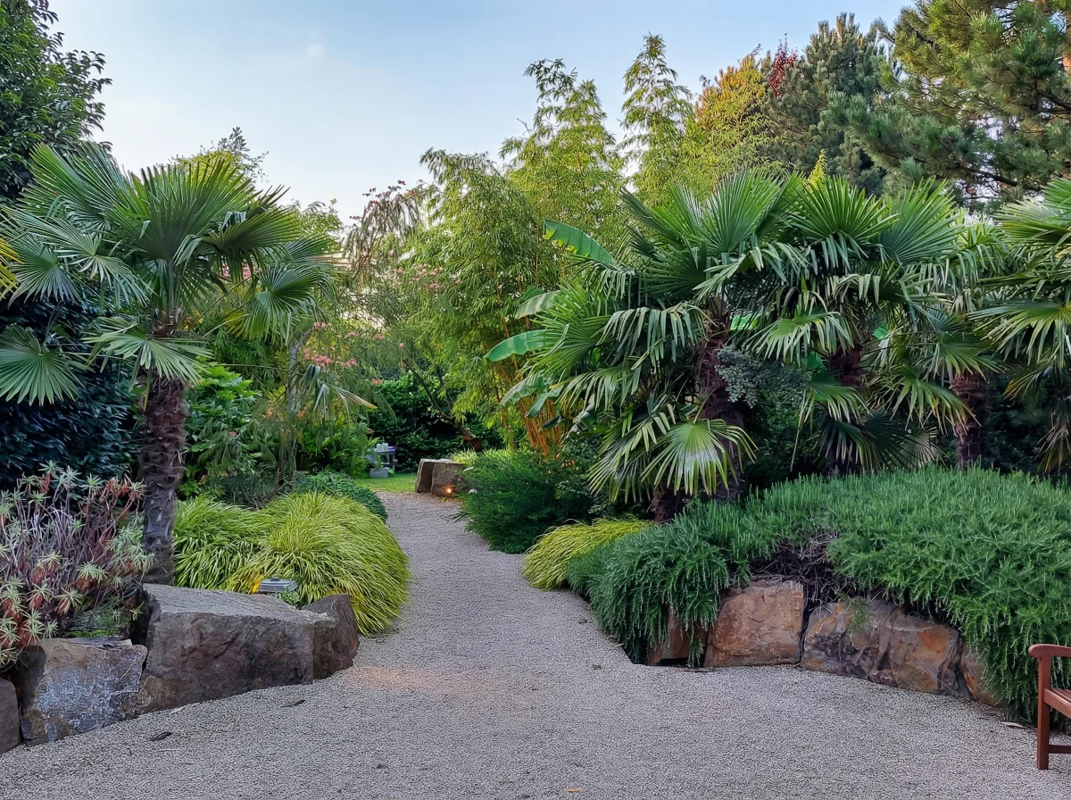 Au fil des sentiers, les ambiances se succèdent et se transforment. Tantôt minérales et structurées, tantôt luxuriantes et enveloppantes, elles composent une mosaïque paysagère subtilement orchestrée. Les perspectives sont soigneusement travaillées pour créer des respirations, des surprises visuelles et des instants de contemplation.